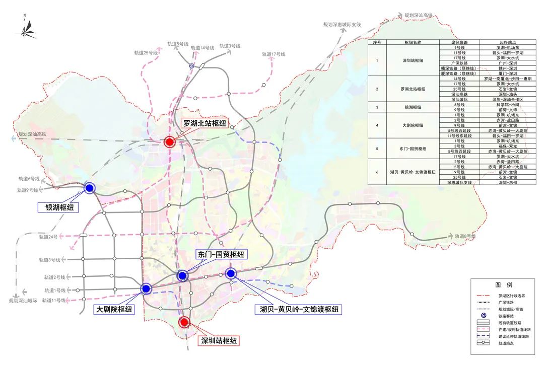 具体而言,将加快推进深汕高铁、14号线建设,加强对大湾区其他城市的交通辐射、快速通达;启动17号线罗湖段建设,争取25号线纳入五期;同时,充分利用罗湖北站枢纽周边片区纳入新一轮国土空间规划全市44 个地下空间重点开发地区的重大发展契机,围绕罗湖北站枢纽推动地下空间的竖向立体综合开发和横向联通开发,构建高质量高标准的新型综合枢纽示范。