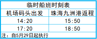 自5月29日起,珠海航线船班恢复至每日2进2出4个班次。