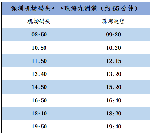 深圳机场码头往返珠海九洲港最新船班时刻表
