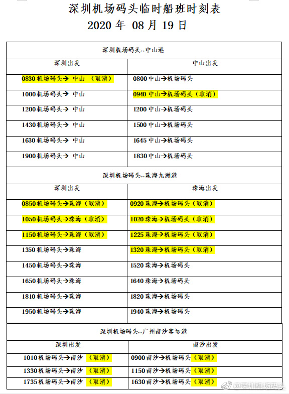 接船公司通知,因受台风“海高斯”影响,2020年8月19日临时取消以下船班。