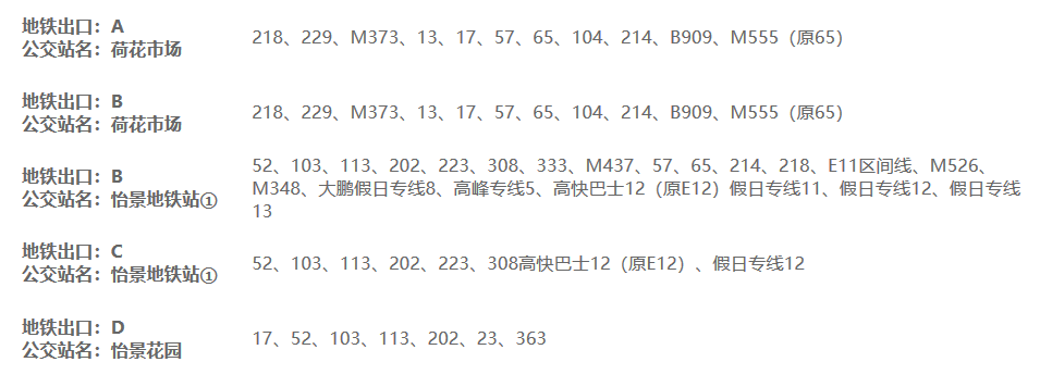 A出口: | 黄贝路西侧、怡景花园、荷花市场 |