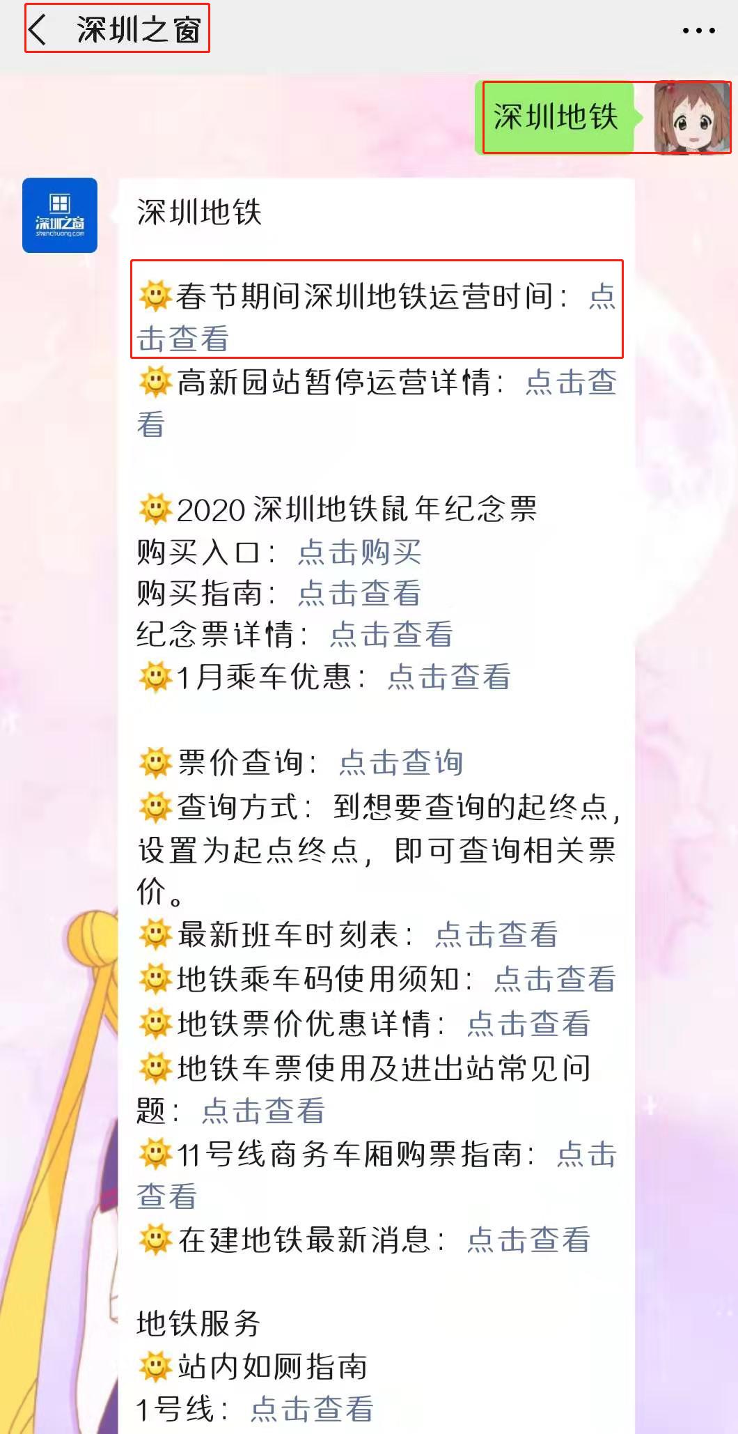 微信搜索【深圳之窗】公众号,回复关键词【深圳地铁】可查看深圳地铁运营时间、站点、如厕指南及深圳有轨电车相关信息。