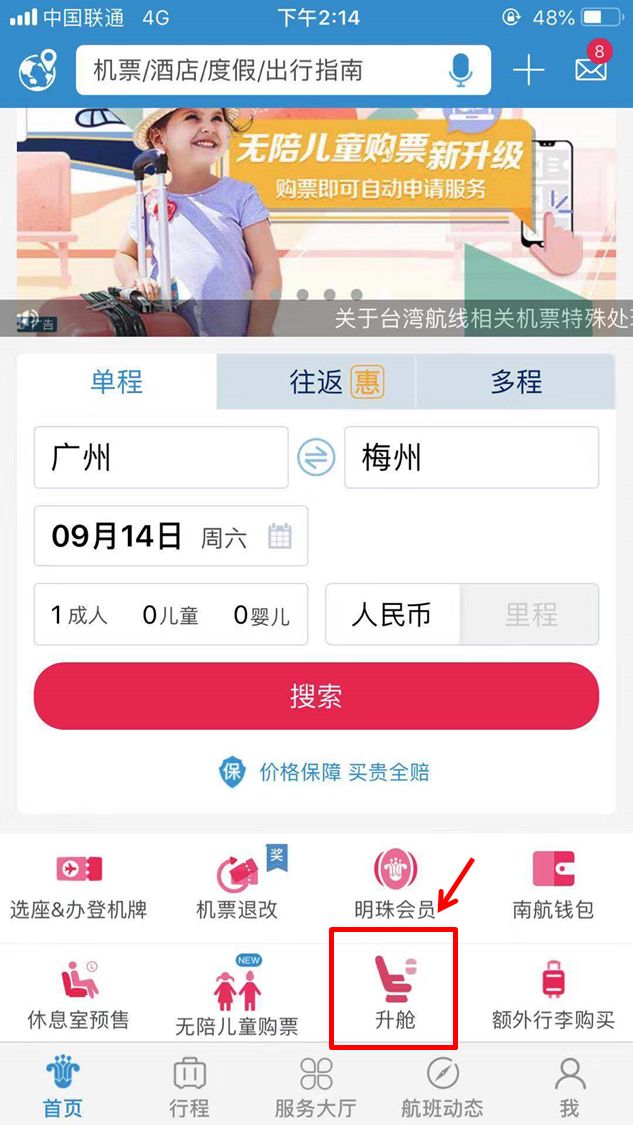 南方航空怎么用APP自助升舱?