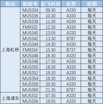 东方航空深沪空中快线,每天17班往返,其中13班为宽体机执飞。