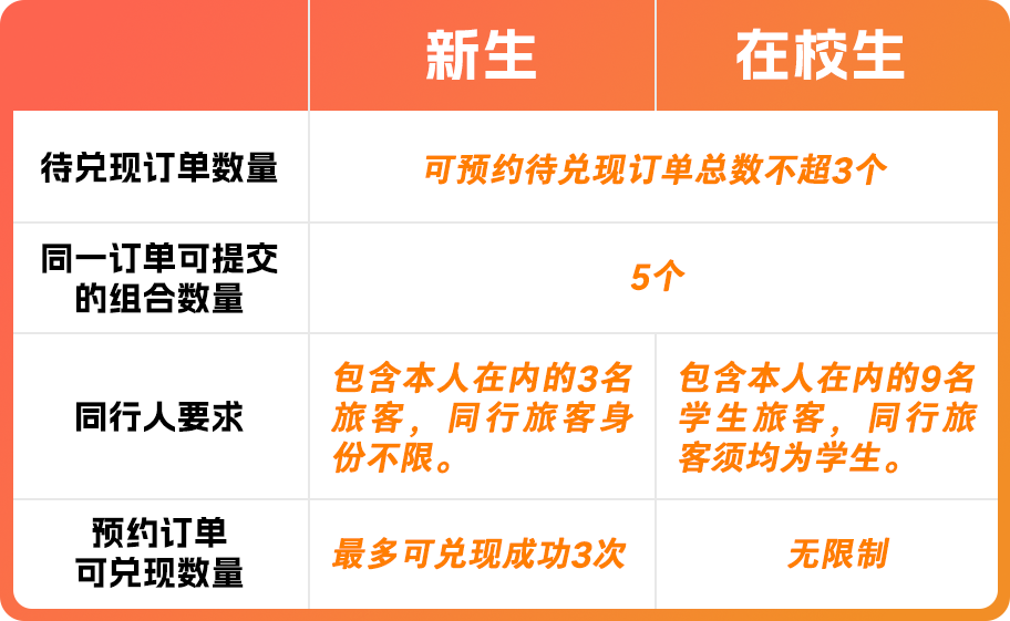 举例说明:学生优惠区间为A-C,分段预约A-B、B-C的车次。如果此两单均成功兑现,只会扣减一次学生优惠次数。