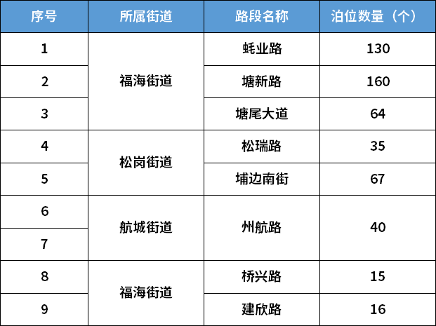除新建停车场外,今年市交通运输局统筹全市新增宜停车泊位 2000 个,其中宝安区拟新增宜停车泊位 500 多个,满足小伙伴们对路边停车的需求。